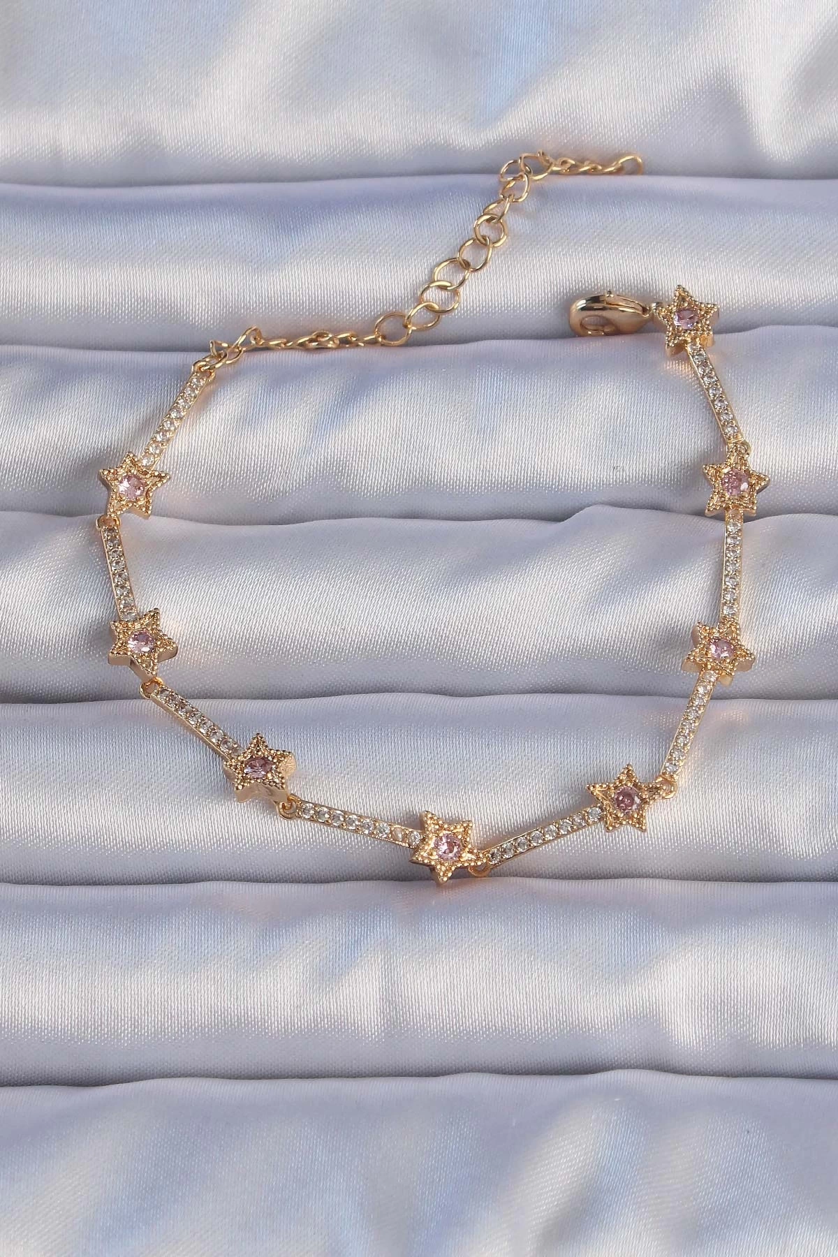 Vip Seri Pirinç Altın Renk Zirkon Taşlı Yıldız Model Bileklik